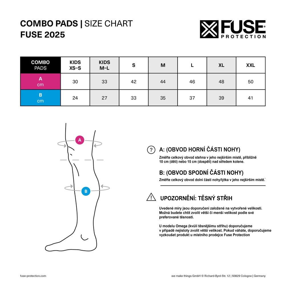 Lepší brát tu větší ... doporučuji vycházet z rozměru A, tedy vrchni obvod nad kolenem ...