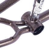 Signature rám Coreyho Walshe v jedinečné barevné variantě Preston Okert – Copper Vein je navržen pro maximální pevnost, kontrolu a styl. Svařený z Cult Classic trubek z kvalitního 4130 CrMo, nechybí výztuhy na vrchní i spodní rámové trubce ani investment cast prvky. Sedlová spona i můstek zadní stavby stejně jako patky rámu využívají této metody, což jen podtrhuje čistý vzhled rámu. Dostatek místa pro široké pláště a tepelně upravené patky rámu. Odjímatelné čepy brzd jsou umístěné na spodní části zadní stavby.