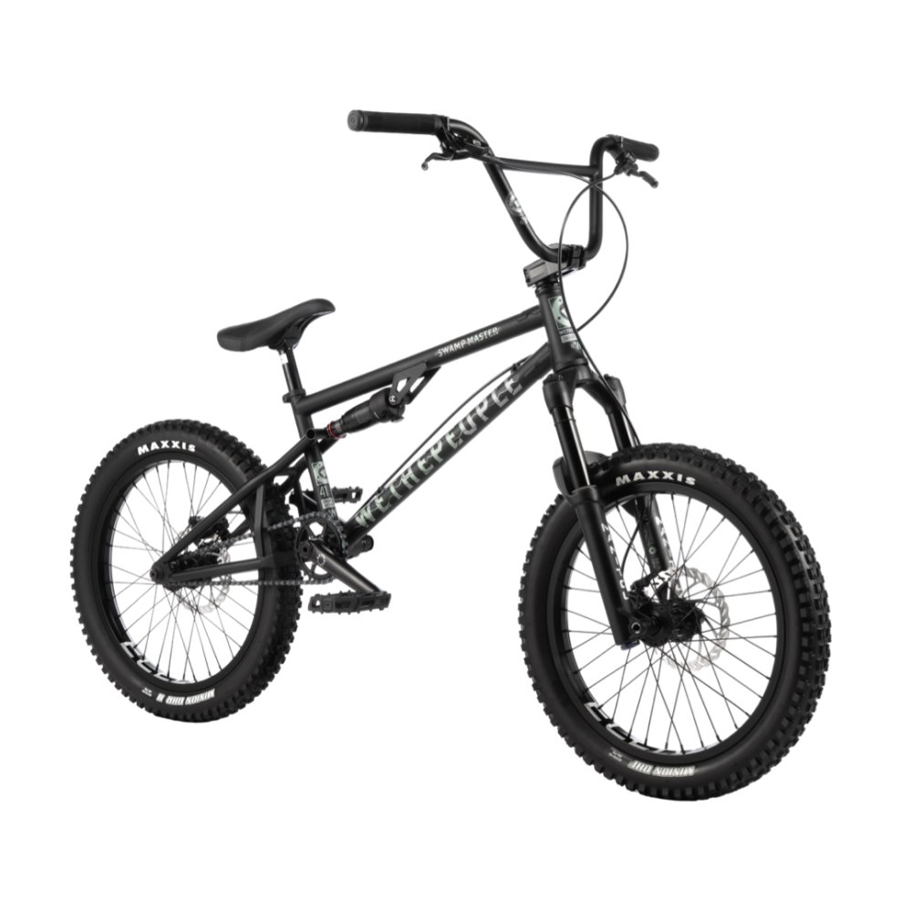 Wethepeople the Swamp Master V2 je druhá generace plně odpruženého BMX kola, které nabízí zcela nový svět zábavy. Je inspirováno světem sjezdových horských kol, smíchaným s klasickými kořeny BMX a zábavou, toto kolo je přinejmenším jedinečné. THe Swamp Master byl zkonstruován v Německém Kolíně nad Rýnem a je určen pro pořádný downhill shredding, přičemž získává pohyb a volnost, který nabízí BMX kolo. Swamp Master je první sériově vyráběné kompletní kolo svého druhu, které je osazeno směsí vybraných Wethepeople a Éclat komponentů určených pro BMX a originálních MTB dílů od společností Maxxis a Manitou. Je připraveno přinést revoluci do nové kapitoly fúze BMX a MTB. Druhá generace přináší ještě více prostoru pro rychlou jízdu. Menší řídítka, přepracované zadní vzpěry a kvalitní tlumič s větším zdvihem doplňují brzdy s většími kotouči o průměru 160 mm.
