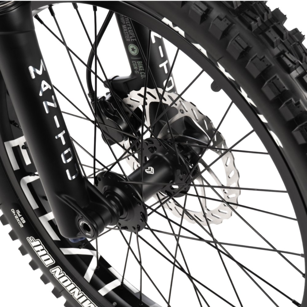 | Zadní náboj: | Éclat "EXILE" disc Cassette, 3/8" female šrouby, 36 drátů, průmyslové ložiska |
